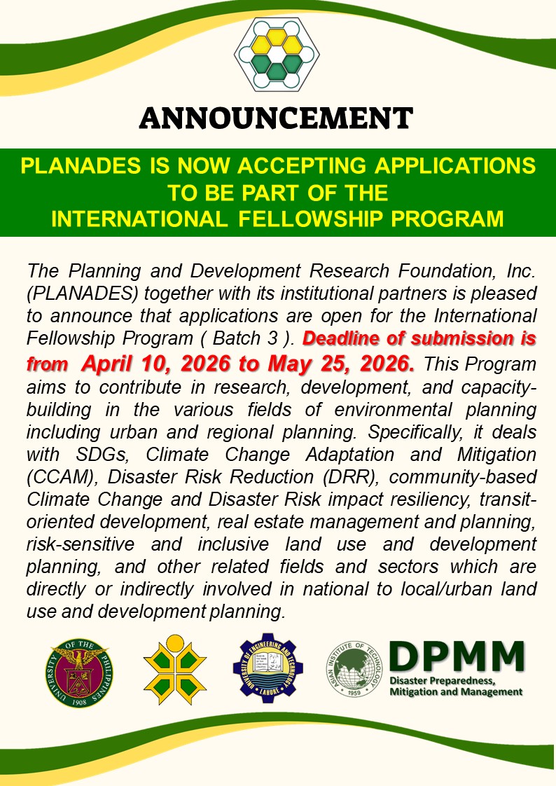 The Planning and Development Research Foundation, Inc. (PLANADES) successfully held its 47th Annual General Membership Meeting on January 27, 2025, at the School of Urban and Regional Planning, University of the Philippines. The event brought all the registered PLANADES active members in terms of esteemed experts in the field of urban and regional planning, both in-person and via online video conferencing, with participants joining from various parts of the world, including Germany and Pakistan. Read More>>>
